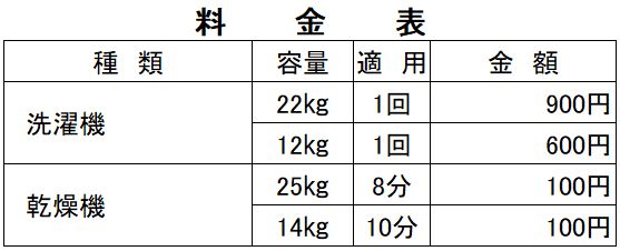 ![]() ■洗濯機(22kg)・・・・・・・1台 ■洗濯機(12kg)・・・・・・・2台 ■乾燥機(25kg)・・・・・・・1台 ■乾燥機(14kg)・・・・・・・5台 ■洗濯乾燥機(10kg~17kg)・ 1台 ■ソフター自動販売機 ・・・・1台 ![]()